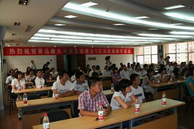 图四:青岛康大外贸集团慈善助学基金签约暨助学金发放仪式现场。