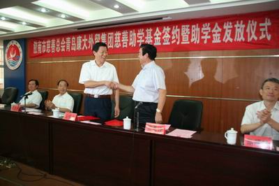 据悉,作为国家改革开放政策的践行者,青岛康大外贸集团始终不忘企业的社会责任。康大集团自成立以来,一直坚持“回馈社会,造福人民”的理念,关注社会民生,承载社会责任,不遗余力的致力于各项公益事业,努力实现企业同社会共存共赢,共同发展。公司自成立以来,已先后捐款达1400多万元,涉及助医、助学、助困、助农等多个领域。此次,青岛康大外贸集团再次建立了1亿元的慈善助学基金,将每年增值的100万元,定向用于资助我市贫困家庭的大学生,规模之大在胶南尚属首例,在全省、全国建立1亿元慈善助学专项基金中亦为少数。