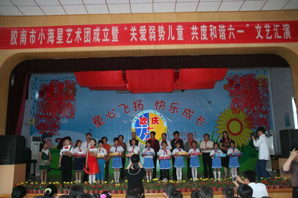 据悉,此次接受慈善爱心捐赠的100名弱势儿童代表是团市委从全市弱势儿童群体中选出的。其中,珠海路小学留守儿童代表20名、市聋哑学校残疾儿童代表40名、王台镇希望工程资助儿童代表20名、隐珠街道办事处香港回归希望小学学生代表20名。(图、文/胶南市慈善总会,慎独)